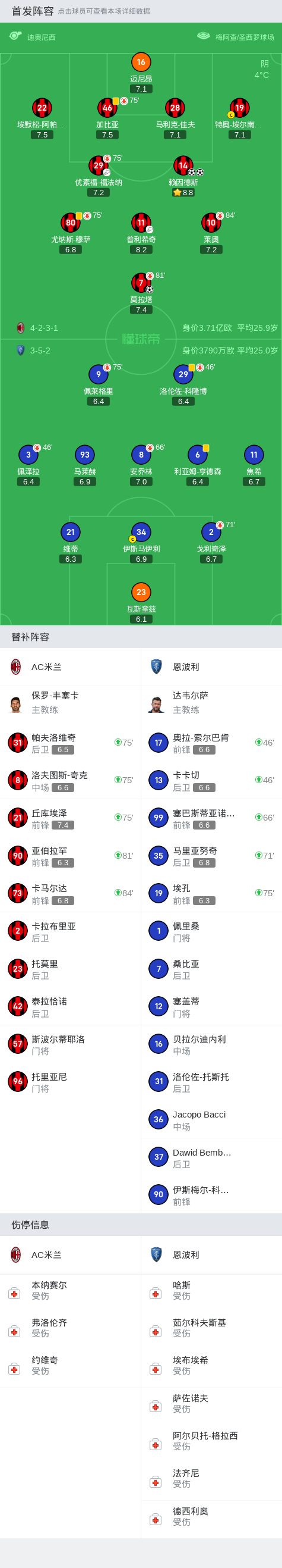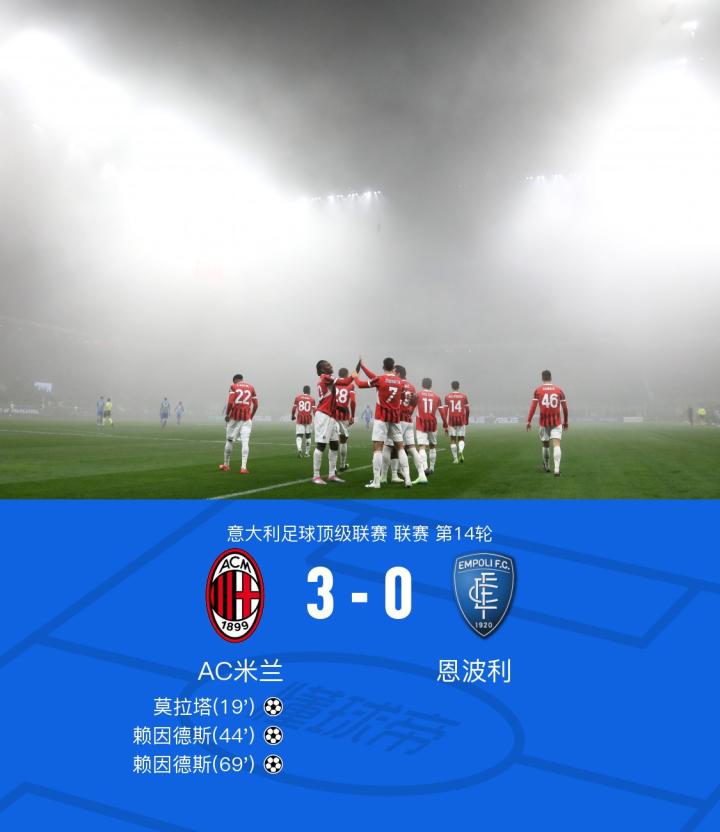 AC米兰在主场迎战恩波利,比赛开始后AC米兰展现了强大的进攻实力。在第19分钟,莱奥的射门被挡出,但莫拉塔补射得手,让AC米兰率先取得了领先。随后的比赛中,AC米兰的进攻节奏更加明显,特别是赖因德斯和普利希奇等球员的发挥极为出色。第44分钟,赖因德斯的精彩凌空斩中,再次为AC米兰扩大了比分,让球队2-0领先。